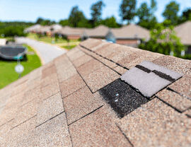 • Wind-Damaged Shingles: Wind-damaged shingles can look like completely missing shingles, granules in your yard, or curled roofing shingles. Our team can replace all damaged shingles for a complete repair.